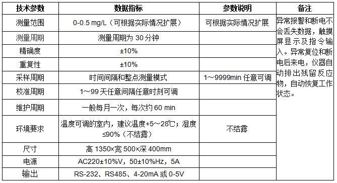 總銀在線分析儀技術(shù)參數(shù)